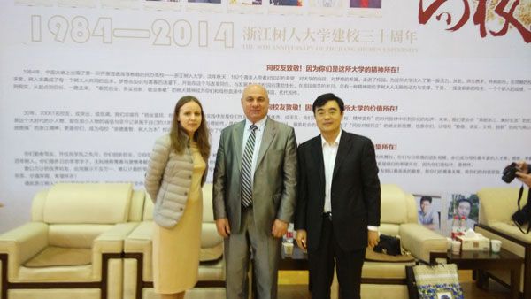 刘常青董事长与联合国货币基金会组织成员、宁波诺丁汉大学教授GRADEN教授合影
