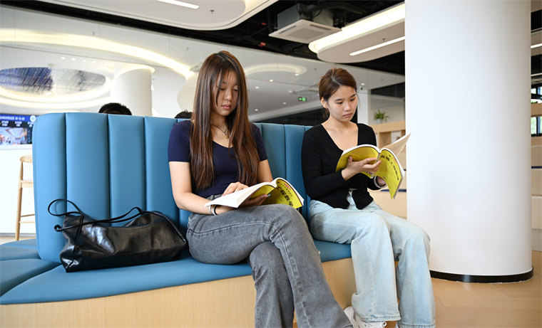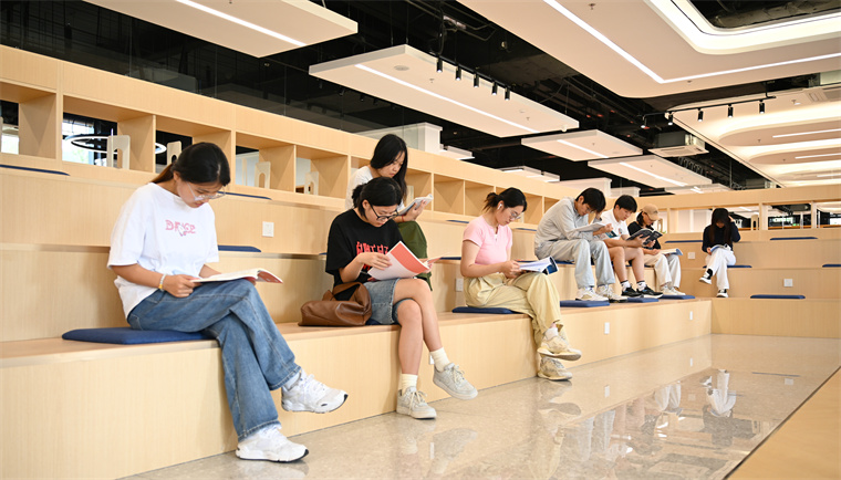“踏入方塘书屋,仿佛步入了知识的静谧港湾。温暖的灯光洒在木质书架上,每一本书都散发着诱人的墨香。柔软的座椅与安静的氛围相得益彰,让我瞬间沉浸于学习的海洋。”国际商学院酒店管理本专业马文杰同学表示这所24小时不打烊的学习空间是自己心目中最美的“精神灯塔”。近年来,学校依托文化资源丰富、平台载体多元等优势,着力打造师生喜闻乐见的学习空间,建设书香浓郁的教育阵地,释放理论学习之势能,让学习更有宽度、高度、深度。