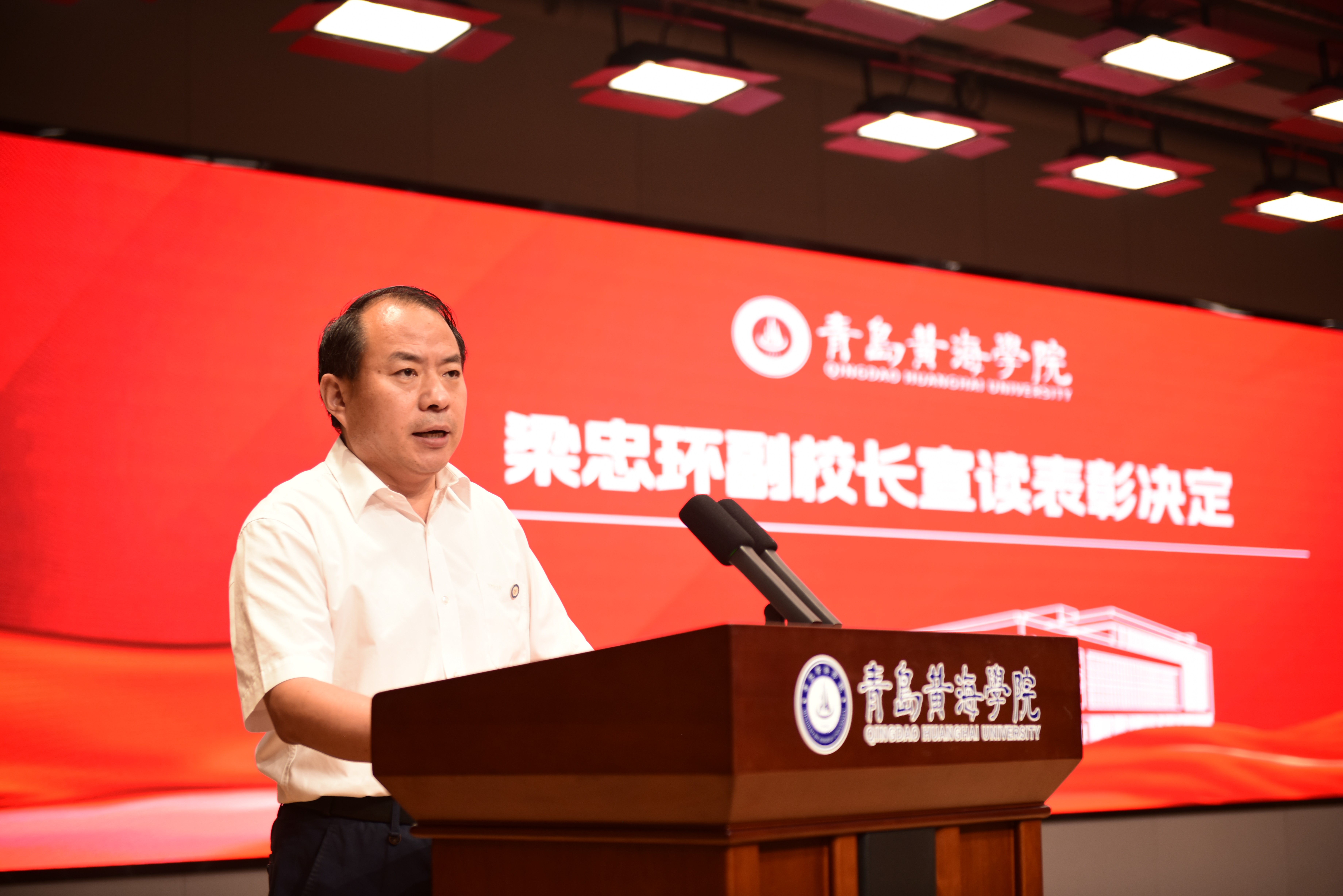 表彰大会开始,全体教职工起立,奏唱国歌。副校长梁忠环宣读了表彰决定。