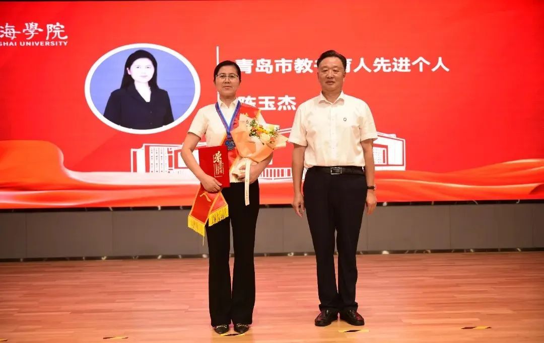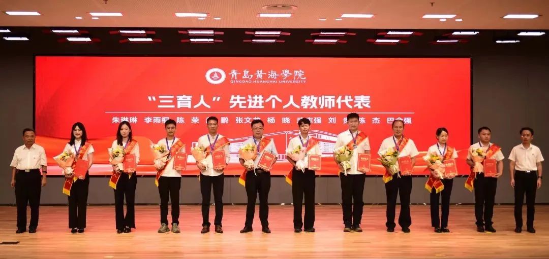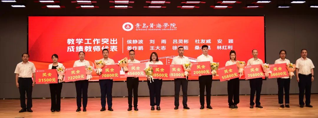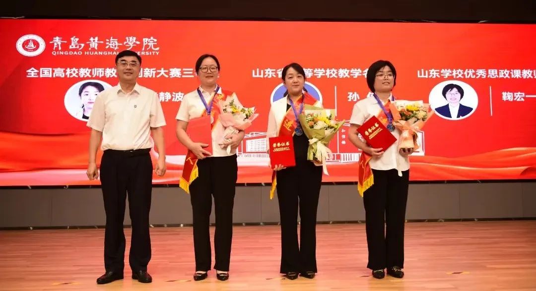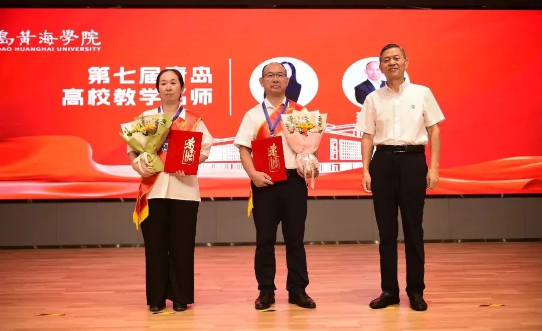 学校领导为荣获山东省高等学校教学名师、青岛市高校教学名师、青岛市教书育人先进个人、“三育人”先进个人以及在教学工作和学生工作中取得突出成绩的团队代表和个人颁发荣誉证书和奖章。颁奖过程中,获奖教师分别结合各自工作,分享了在立德树人、教书育人、教学改革等工作中的心得体会。
