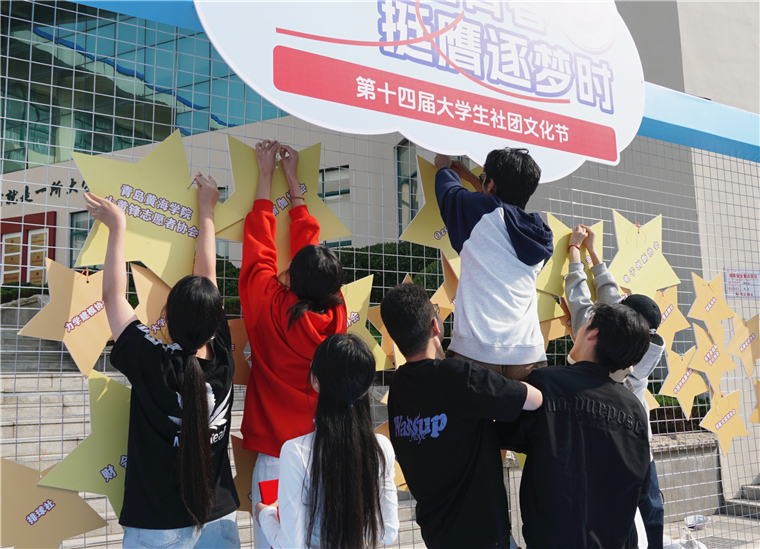 9个五星级社团和30个四星级社团的代表将写有自己社团名字的星星挂上星星展台。