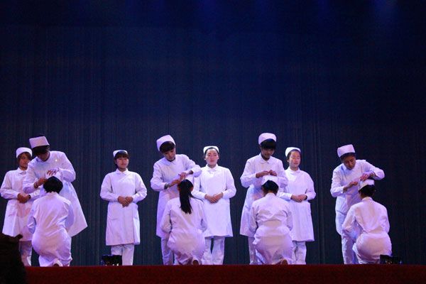 一段欢腾热闹的舞狮表演和水鼓舞《中国龙》拉开了整场晚会的序幕,也将整场晚会赋予了浓郁的年味;学院幼儿园的小朋友们身穿节日盛装,手提花灯上演了新年的《开门红》,也由此拉开了春之序曲。机电工程学院和人文教育与艺术学院共同呈现的健美操《生命舞蹈》,洋溢着青春的激情,充满了年轻的活力,预示着春的新生和万物的蓬勃向上;拉丁舞《旋转》和爵士舞《嘻哈女孩》性感热烈的演绎,将夏季的火热奔放诠释的淋漓尽致;秋季是收获与浪漫并存的季节,《惊鸿舞》的柔美动人、《漂洋过海来看你》的缠绵悱恻、《我要做个好学生》的幡然悔悟、《风吹麦浪》的唯美意境为观者勾勒出了一幅金灿灿的秋之世界;护理学院情景剧《白衣天使之路》,师生共同演绎的诗歌朗诵《黄海赞》,为这凛冽的寒冬带来了浓浓暖意,也为四季序曲画上了完美的句号。