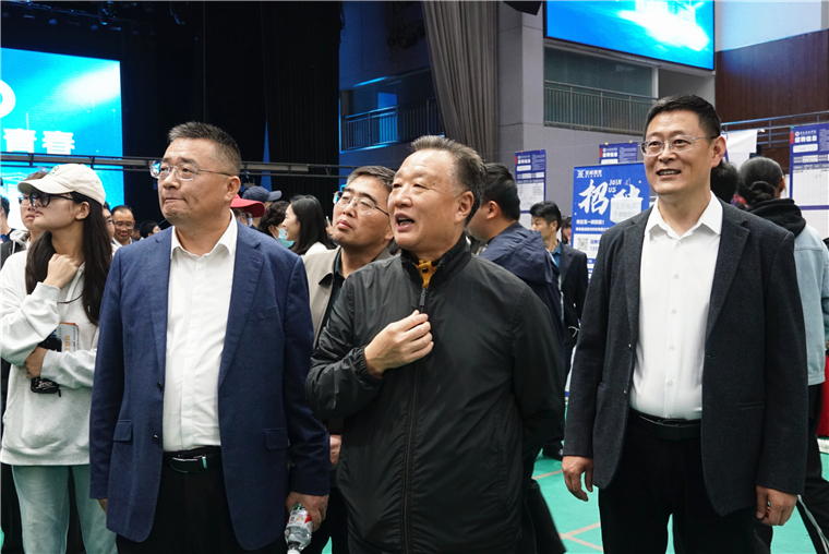 招聘会现场,董事长刘常青、党委书记李东、副校长刘纪新等学校领导与学生和企业面对面交流,询问招聘岗位、毕业生简历投递等情况,了解人才招聘需求和对学校人才培养的反馈和建议。刘常青董事长和李东书记还专门来到校友企业专区,与校友们亲切交流,感谢他们对学校就业工作的支持与帮助。