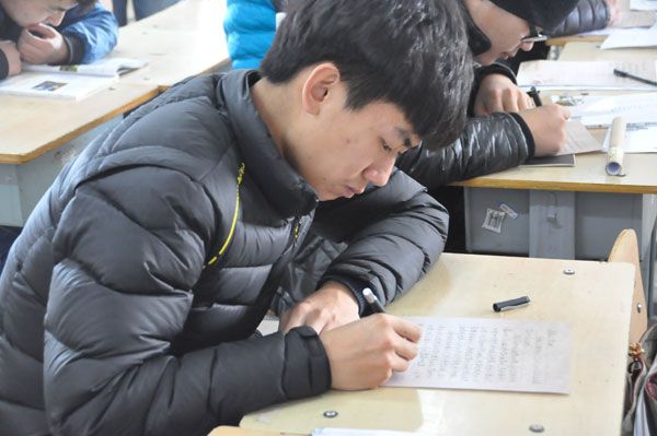 同学们认真书写感恩信