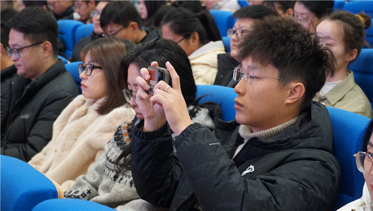 台上,许振超教授事迹动人、言辞恳切;台下,师生代表神情专注,认真做着笔记,现场不时响起阵阵掌声。