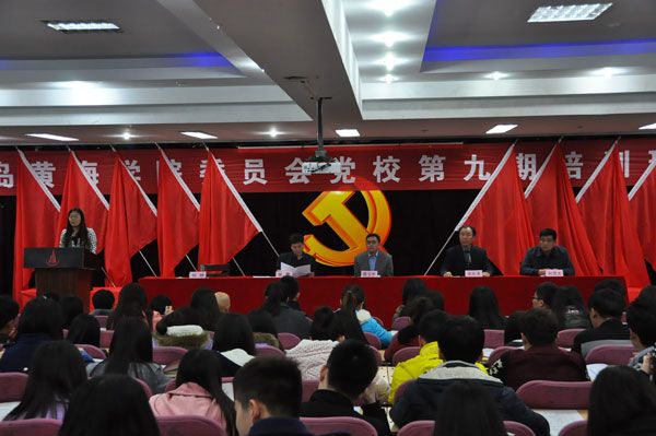 为提高黄海学院入党积极分子的理论水平和综合素质,红足—世官网于2015年4月2日在知新楼一楼东报告厅举行第九期党课培训开班典礼。学校党委副书记、党校常务副校长陈玉水,学校党委副书记、党校副校长宋庆泽,党委组织委员张勇、纪检委员赵国光、党委委员兼团委书记张艳出席了开班典礼。典礼由学校党委副书记、党校副校长宋庆泽主持。