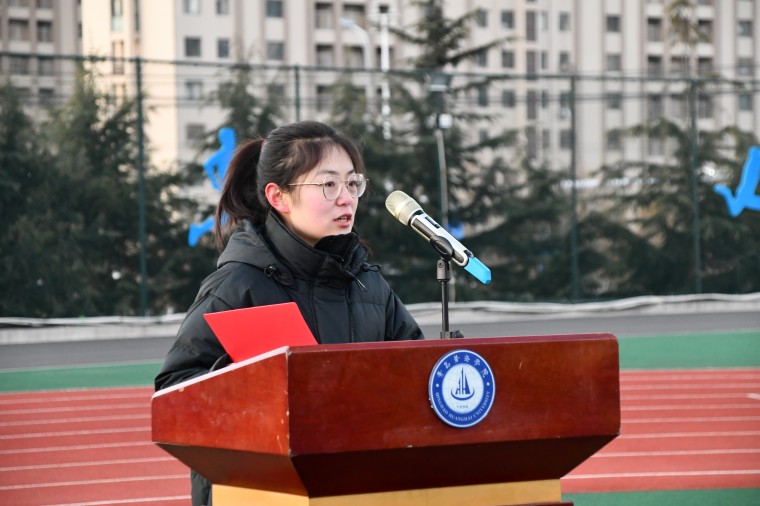 教育学院王津超同学作为学生代表发言,她表示,新学期是突破自我的新契机,她呼吁同学们在新的学期里,勇敢迎接挑战,不断突破自己,以专业知识为基石,以社会责任为动力,努力成为推动社会进步的中坚力量。