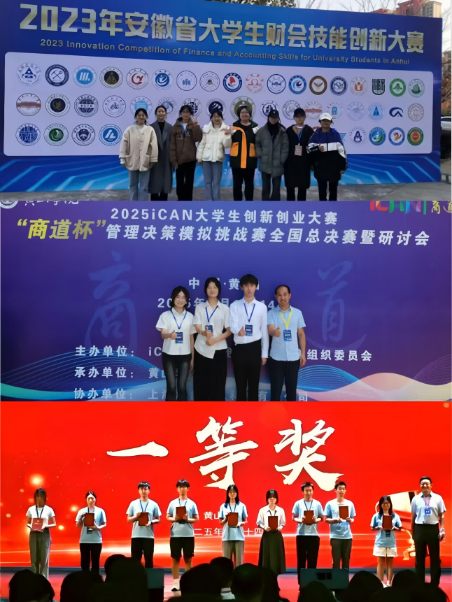 近3年来,我院积极组织并参与全国大学生市场调查与分析大赛、大学生统计建模大赛、物联网应用创新大赛、安徽省大学生金融创新挑战赛、“安徽技术杯”安徽省大学生国际商务模拟谈判大赛、安徽省“国元证券杯”大学生金融投资创新大赛、安徽省大学生创新创业ERP管理大赛、东方财富杯全国大学生金融精英挑战赛等学科竞赛,获得国家及省级奖项190余项。