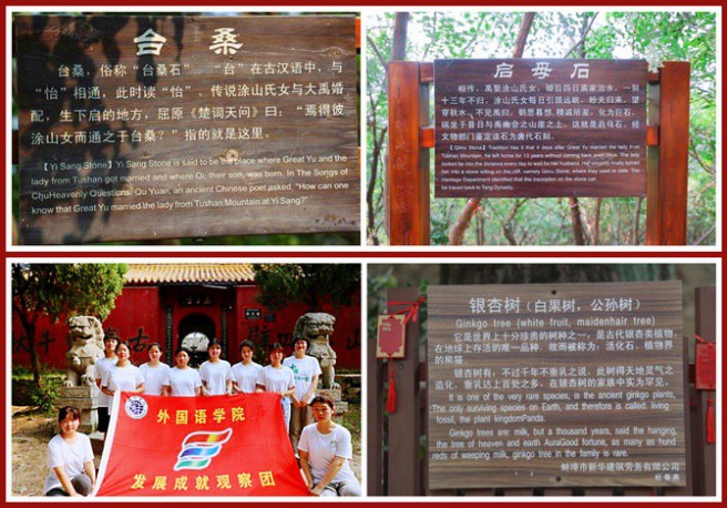 暑期社会实践结合人才培养方案,形成“走进求学城市”“走进红色蚌埠”特色实践方向,如“走进求学城市”开展涂山旅游景点翻译考察,形成调研报告。学院组织承办跨文化能力大赛等赛事,以赛代训提升学生跨文化能力,三年获全国大学生英语竞赛安徽赛区一等奖 24 项等多项奖项。