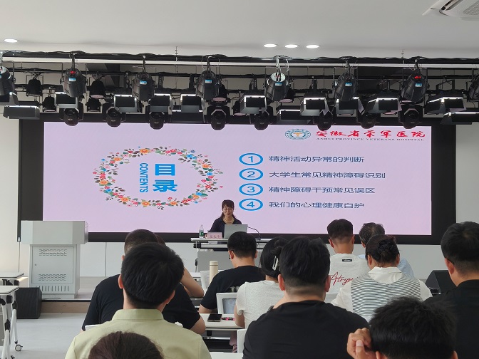 为深化医校协同育人机制,推进心理育人工作,提升工作队伍专业水平。8月29日下午,学校在“一站式”学生社区众创空间成功举办精神卫生科普校园行活动,本次活动特别邀请安徽省荣军医院精神科主任医师翟长平开展“筑牢校园心理防线——常见精神障碍的识别与干预”专题讲座,学校心理健康教育中心全体教师、二级学院心理辅导站及全体辅导员参会。