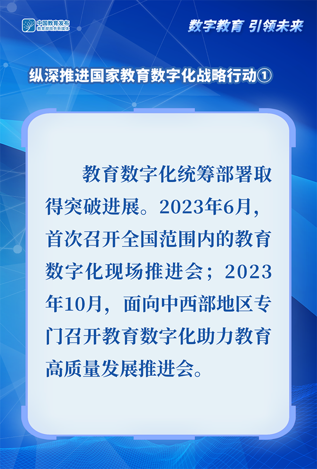 2024世界数字教育大会于1月29日-31日举办。教育部政务新媒体推出系列图解,带你了解我国推进教育数字化工作和建设学习型社会、学习型大国相关举措。今天一起看如何纵深推进国家教育数字化战略行动—— 来源 | 据1月26日教育部新闻发布会