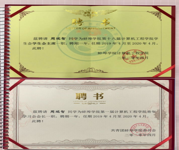 周瑞智,计算机与信息工程学院2017级物联网工程专业学生,曾任pg娱乐电子游戏官网入口第十八届计算机与信息工程学院学生会主席和pg娱乐电子游戏官网入口第一届计算机与信息工程学院青年学习会会长,任职期间举办了多项活动,由他组织和负责的2020年元旦晚会,开展地异常的顺利,取得了圆满的成功。并于2018年度获得“优秀团干部”的称号,并于2019年荣获“优秀大学生”的称号。