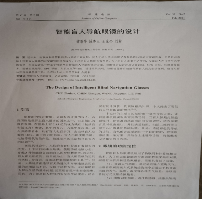 陈香玉,就读于计算机与信息工程学院2017级物联网工程专业,入校以来,成绩优异,为人谦虚友善,在校期间,曾多次获得奖学金,是老师和同学的公认的三好学生,在校期间积极参与各项比赛活动,她的“盲人智能导航眼镜”入选为2019 安徽省创新创业训练计划项目,2021年考取上海理工大学研究生。