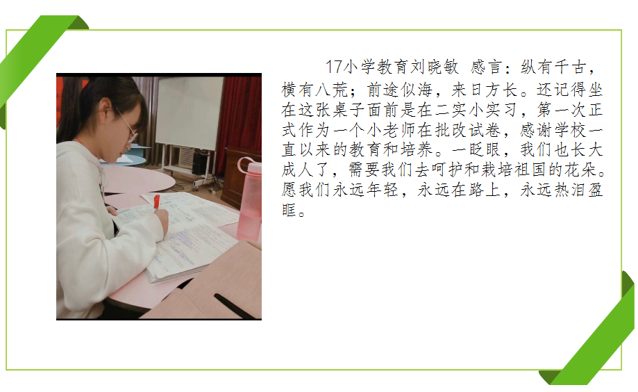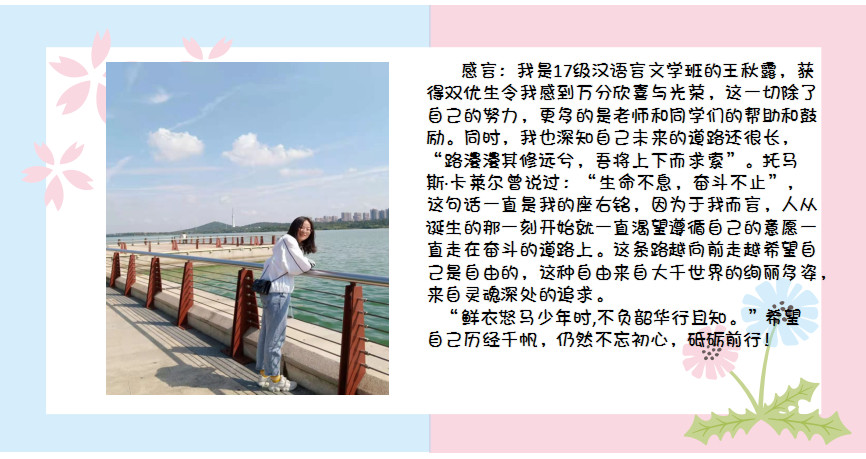 “青春带走了什么?留下了什么?剩一片感动在心窝。时光的河入海流,终于我们分头走,没有哪个港口是永远的停留。” 光阴似箭,一转眼,4年的同窗生涯已成为过去。但教室里,还回响着我们课间的窃窃私语;操场上,还留着我们奔跑的矫健身影。这里的风雨广场、未名湖和梧桐树是我们永远依恋的百草园。