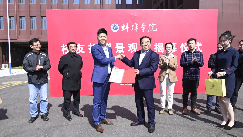 捐赠的景观石采自灵璧,高约3.5米,重达5吨,正面镌刻着“立德树人”字样,是学校践行“立育人之德 树有德之人”的体现,彰显了pg娱乐“笃学 重行 修德 立才”的校训精神。校党委副书记韦文联和校友陈伦权共同为校训石揭幕,向陈伦权颁发捐赠证书及纪念品并合影留念。