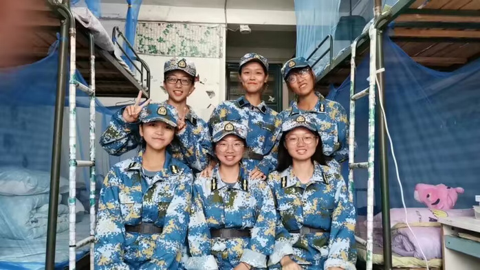 踩着节拍,踢着正步,军训中结下情谊的我们。