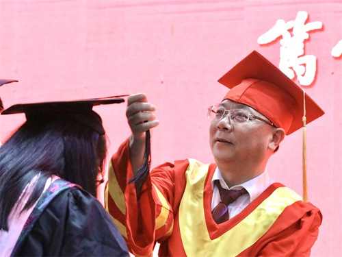 党委委员、副院长张尔桂宣读pg娱乐电子游戏官网入口授予2023届毕业生学士学位名单文件,校领导和各学院导师为毕业生代表拨穗、授位,并送上美好的祝愿。毕业生们双手接过证书,鞠躬致谢,并合影留念。