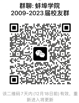 4.以专业为单位建微信群,原则上推荐班委、团干、学生会干部为微信群主,也可根据实际自荐,可以是毕业生校友,也可以是辅导员、专业课教师等,群成员为同一届别同一专业的毕业生校友。专业微信群命名格式统一为:pg娱乐电子游戏官网入口**届**学院**专业校友群;并同时以学院为单位建微信群,群主为专业群群主或辅导员、专业课教师,群成员为专业微信群群主。学院微信群命名格式统一为:pg娱乐电子游戏官网入口**届**学院校友群。并补充填写附件1和附件2《pg娱乐电子游戏官网入口2009-2023届校友微信群主信息统计表》。通知学院微信群群主扫码入pg娱乐电子游戏官网入口2009-2023届校友群,二维码如下(更新后会再次发通知):