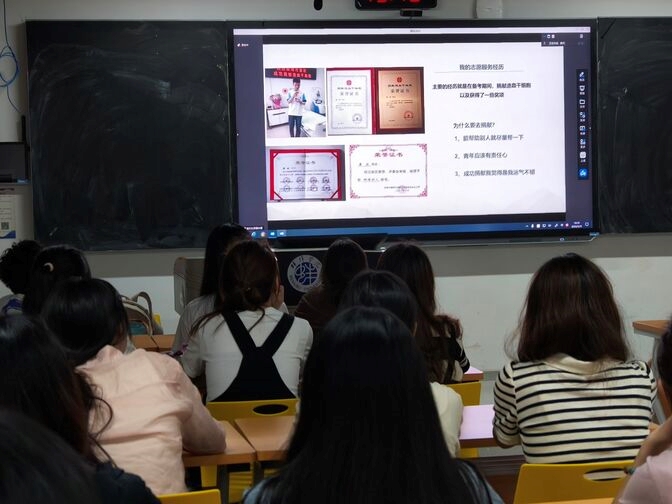 活动伊始,黄欢以一段简洁的自我介绍为开场,向在场同学展示了他丰富的科研与志愿服务经历,而后开始讲述他的志愿服务时光。期间,他分享了个人捐献造血干细胞的故事,并以此为契机,深刻剖析了参与志愿服务活动的意义所在。黄欢强调,志愿服务不仅是对社会的责任担当,更是新时代青年积极投身社会实践的生动体现。他进一步指出,参与志愿服务不仅有助于积累宝贵的实践经验,还能在无形中培养我们的自我管理能力、团队合作精神以及解决问题的能力。这些素质在其他方面同样发挥着举足轻重的作用。当谈及研究生考试,黄欢也分享了自己见解。他强调合理规划时间的重要性,并提供了实用的策略和建议,帮助同学们更有效地准备考试,确保在考研的征途中能够有条不紊,发挥出最佳状态。最后,黄欢留下了自己的联系方式,并热情欢迎同学们随时与他联系交流。张婷婷老师对黄欢校友的返校表示了热烈的欢迎和期待,黄欢也表示将积极参与学校的各项活动,为母校的发展贡献自己的力量。