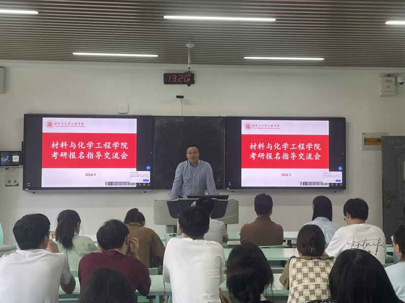 为进一步帮助考研学子了解考研政策,正确认识考研形势,引导和帮助2025届考研学生科学备考、全力以赴做好最后冲刺,材料与化学工程学院于9月23日中午在B130教室开展考研报名指导交流会。会议邀请了杜永磊、张晓云和张健玉三位博士,以及2024届考研成功上岸的优秀毕业生丁婉怡(中国矿业大学)和徐华雪(宁波大学)作为主讲人,会议采用线上线下相结合的方式进行,2025届考研学子参加会议,副院长葛金龙出席交流会。