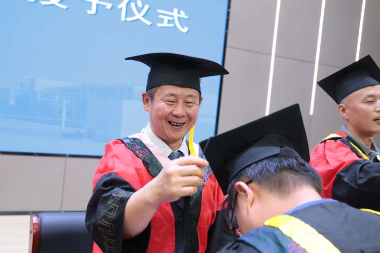 教师代表材料与化学工程学院殷娜老师在发言中寄语毕业生:要牢记初心,把握方向,向身边人学,向实践学,在理论与实际的结合中锻造核心竞争力,在信息洪流中要保持警觉,在众声喧哗中坚守思考的静默,在碎片时代深耕专业土壤,以扎实学识锻造锚点,不断拓展自己的知识边界,不断超越自己,终能穿越风雨,抵达理想的彼岸。