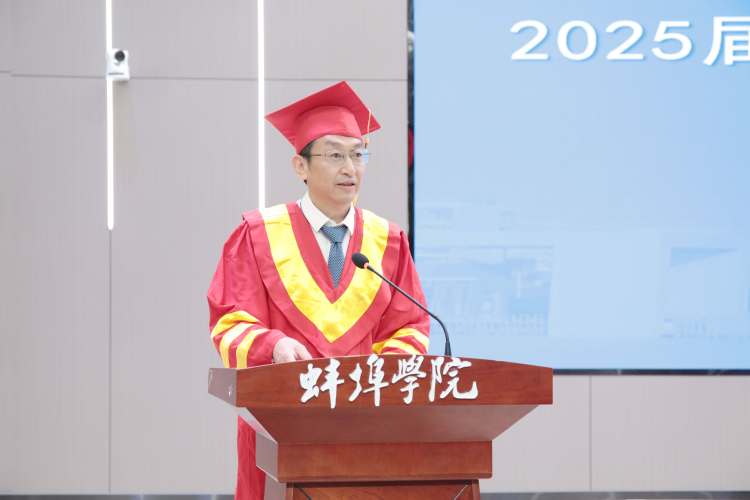 张亚新在致辞中深情回顾2025届学子与学校共成长的四年历程,对同学们在学业科研、创新创业、志愿服务等方面的优异成绩给予高度肯定。面向新征程,他提出四点期望:一要保持勤学善思的状态,做一个志存高远的追梦者,将个人理想融入中华民族伟大复兴征程;二要保持踔厉奋发的姿态,做一个笃行不怠的开拓者,勇做时代前列的奋进者、奉献者;三要坚持兢兢业业的常态,做一个脚踏实地的建设者,践行校训精神,服务国家发展所需;四要保持乐观向上的心态,做一个超越自我的孤勇者,在挫折中向下扎根,于拼搏中向上生长。他特别叮嘱毕业生铭记“1128”(校园面积)寓意一帆风顺、一鸣惊人,“1866”(校门牌号)象征母校永远是精神港湾,他深情表示:“pg娱乐电子游戏官网入口是你家,你曾从这里出发!”
